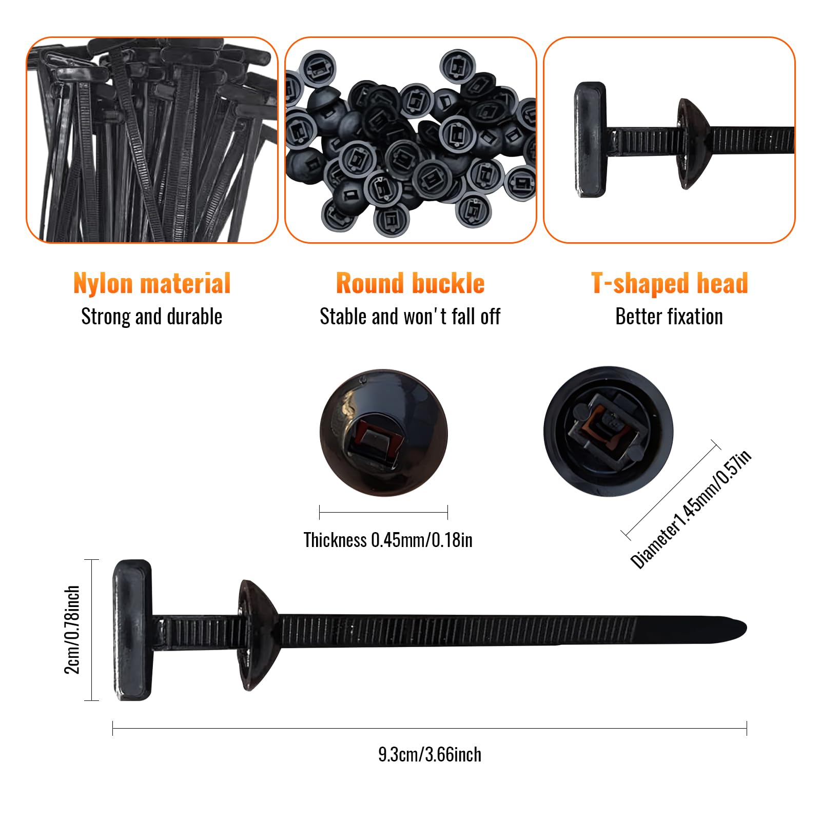 100PCS Nylon Universal Cable Tie Buckle – Heavy Duty Self-Locking Zip Ties Holder with Pin & Button Design, Plastic Cable Ties Tool Fasteners Car Body, UV Resistant Zipties for Car Daily Auto Fixing