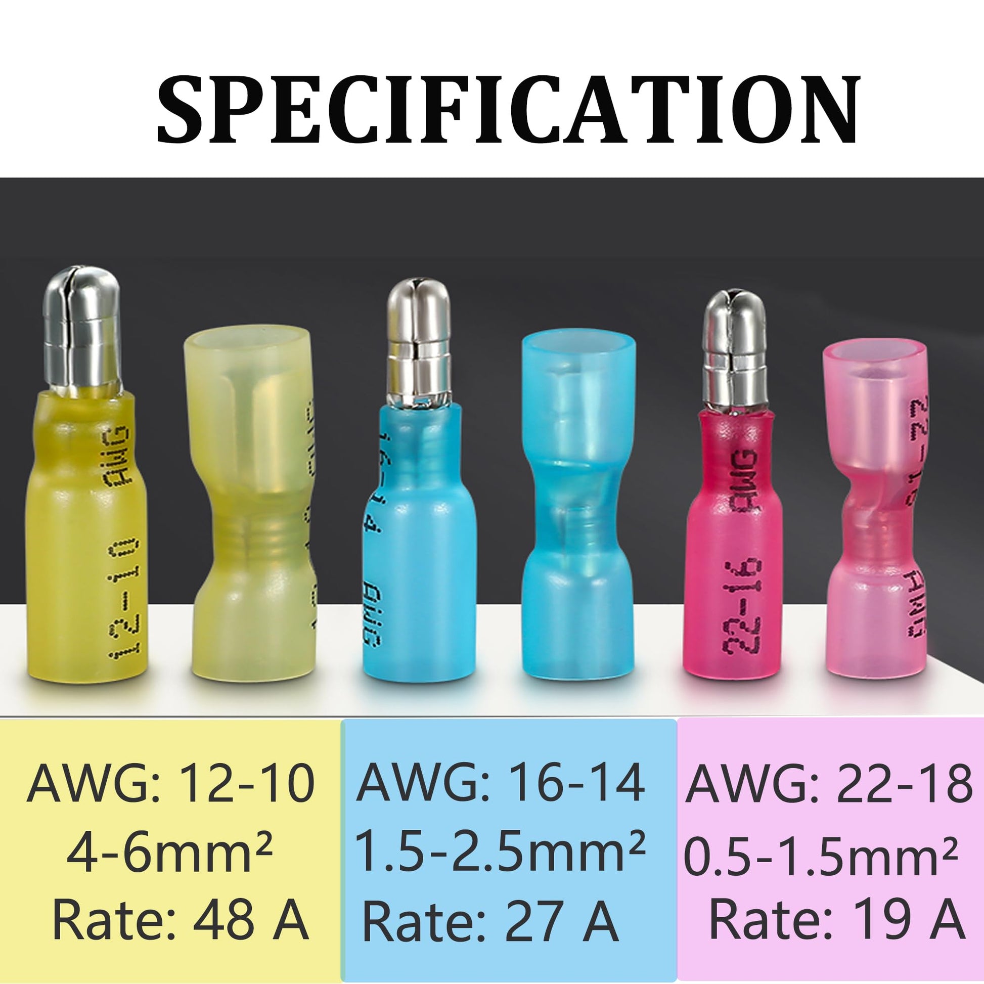 - SUPER STRONG CRIMPS - Compatible with AWG 12-10 (4-6 mm²) wiring, supports up to 19A current load. These bullet crimp connectors make strong crimps, your wire will not slip out.