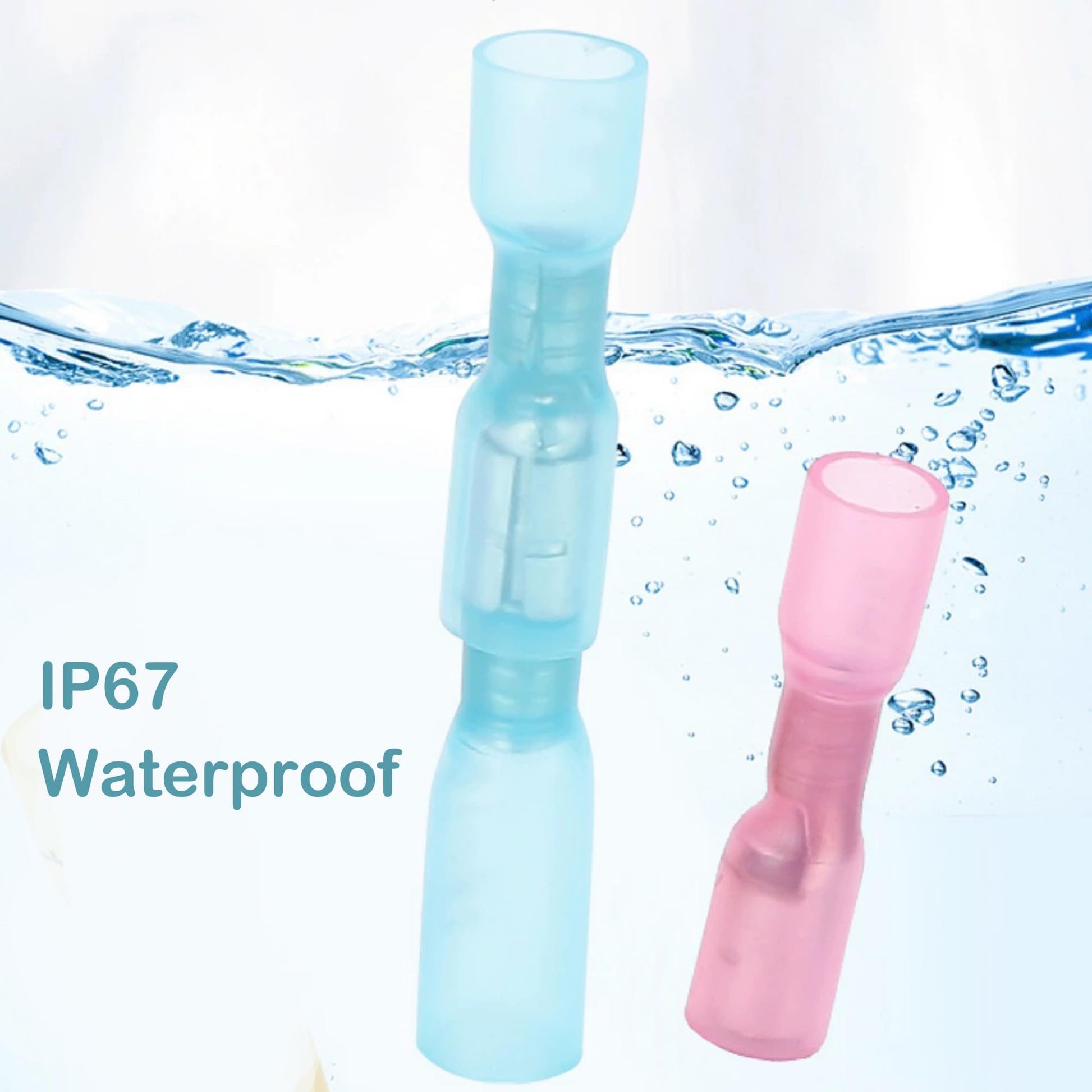- IP67 WATERPROOF ELECTRICAL CONNECTORS- Double protection, to keep moisture out of the crimp connection. The connecting part of the wire and the wire connectors can reach IP67 waterproof level.