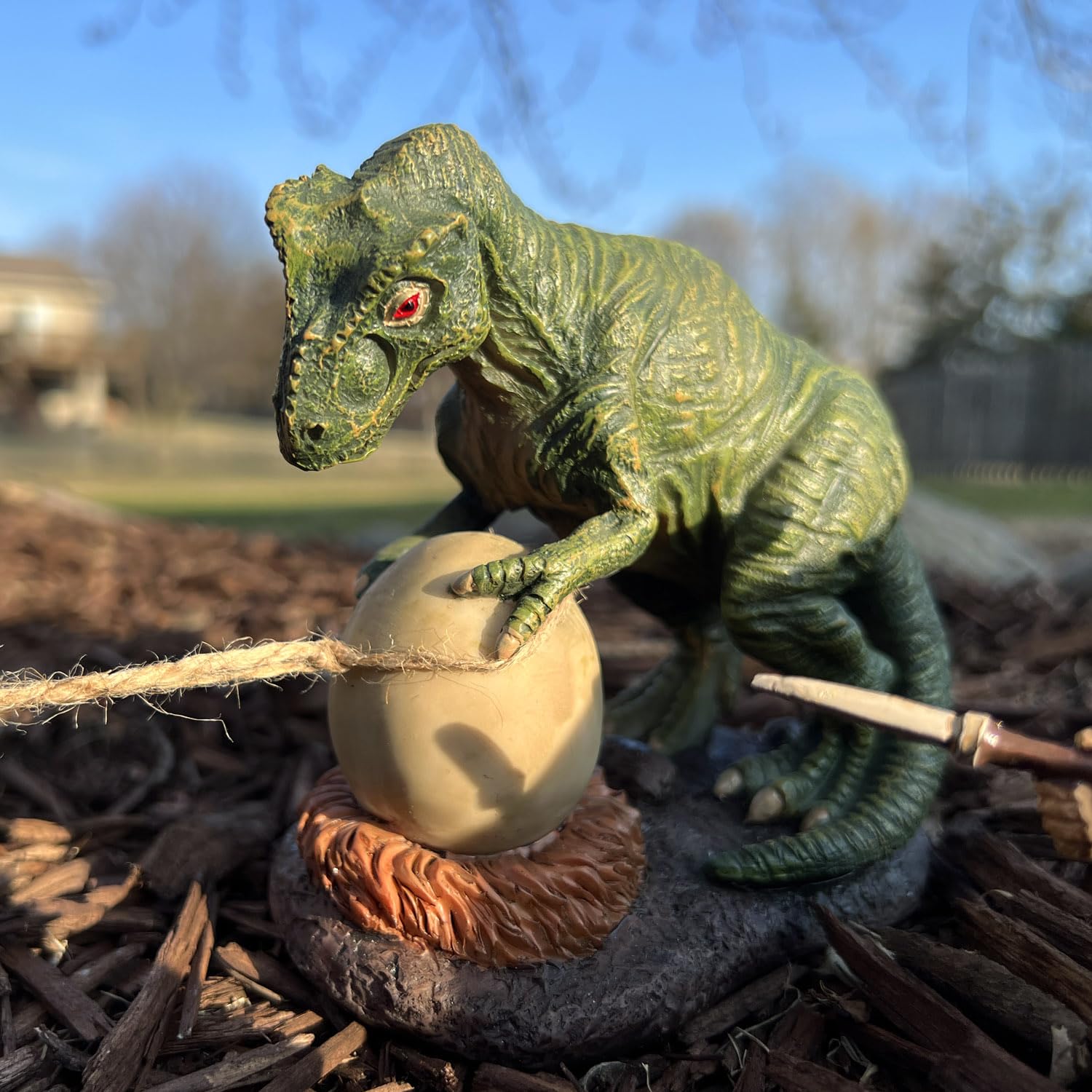 - A Scene to Make Your Guests Laugh: This hilarious set includes three mischievous caveman gnomes and one ferocious T-Rex, locked in a daring egg heist. But will they get away before the Tyrannosaurus Rex catches them? This action-packed, hand-painted statue set is sure to entertain family, friends, and visitors of all ages.