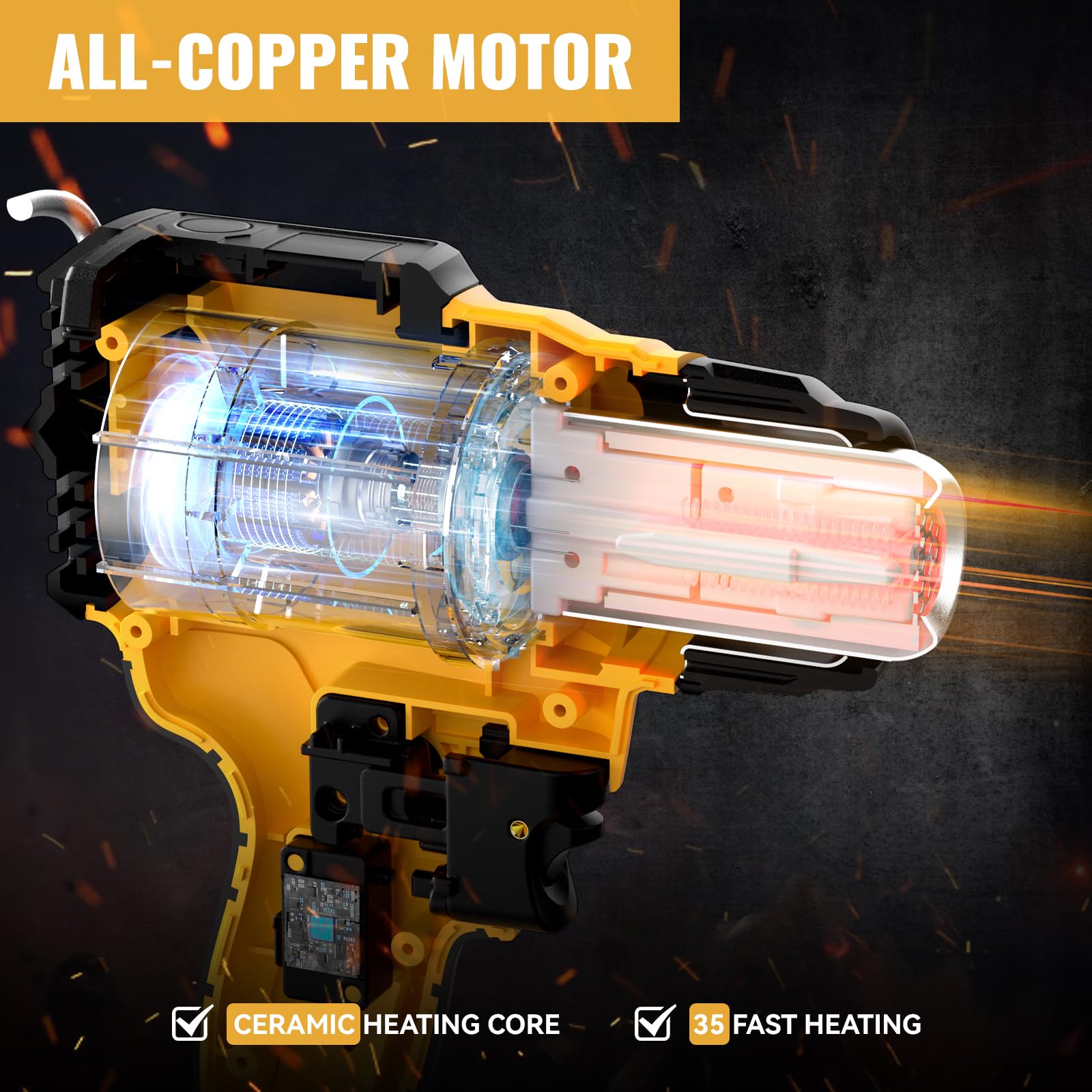 - Multiple replaceable nozzles for wide applications: This heat gun for dewalt is the first choice for professionals and DIY enthusiasts who pursue the best results. In addition, we also give away 4 nozzles, ideal use for shrinking soft tube, heating PVC,shrinking wrap, electronics, loosening rusted bolts, cell phone repairs, and other heating or thawing purpose