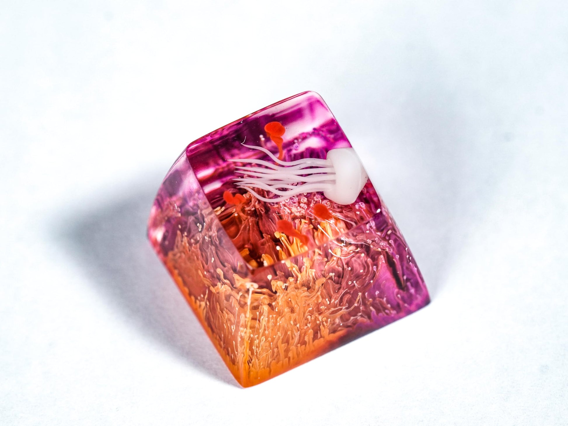 DATKEY Jellyfish Red & Purple Artisan Keycaps - Ocean Cute Aesthetic Custom Keycaps - Gaming Gifts