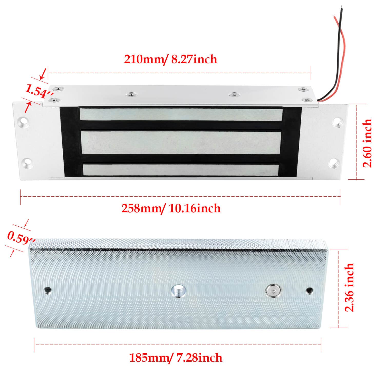 - Size: The lock size is 10.43 x 2.95 x 1.54 inch (265 x 75 x 39 mm); Armature plate: 7.28 x 2.36 x 0.51 inch (185 x 60 x 13 mm). Holding Force: 500kg (1200lbs).