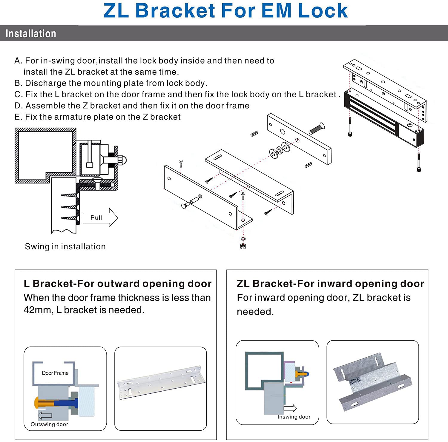 Electromagnetic Lock with Z and L Bracket 1200LBS 500KG Holding Force Electric Magnetic Door Lock 12V Fail Safe NC Mode for Access Control System