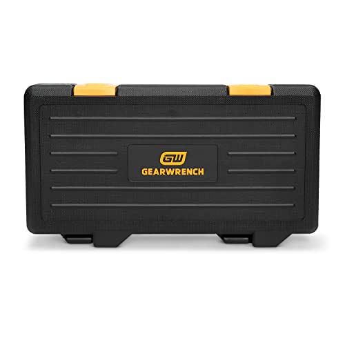 Since launching the original patented 50 ratcheting wrench, GearWrench has continuously led with breakthroughs in pass-through ratchets, sockets, screw/nut drivers, pliers, and specialty tools. No matter the industry you find yourself in, GearWrench has the tools to fit your needs -- from the precise to the nearly indestructable. GearWrench hand tools are warranted for life to be free of defects in material and workmanship. 80300P 51-Piece Socket Set with 1/4-Inch Drive 120XP Ratchet At a Glance 1/4-inch drive 120XP ratchet with 120 positions that give a 3-degree ratcheting arc Low profile head provides access in tight confines Exceeds ASME torque performance requirements Flush-mounted lever for on/off switch Lifetime warranty What's in the Box Thumbwheel ratchet 2- and 6-inch extensions Universal joint SAE standard sockets: 3/16", 7/32", 1/4", 9/32", 5/16", 11/32", 3/8", 7/16", 1/2", 9/16" SAE deep sockets: 3/16", 7/32", 1/4", 9/32", 5/16", 11/32", 3/8", 7/16", 1/2", 9/16" Metric standard sockets: 4, 5, 5.5, 6, 7, 8, 9, 10, 11, 12, 13, 14, 15mm Metric deep sockets: 4, 5, 5.5, 6, 7, 8, 9, 10, 11, 12, 13, 14, 15mm Blow mold case with removable lid
