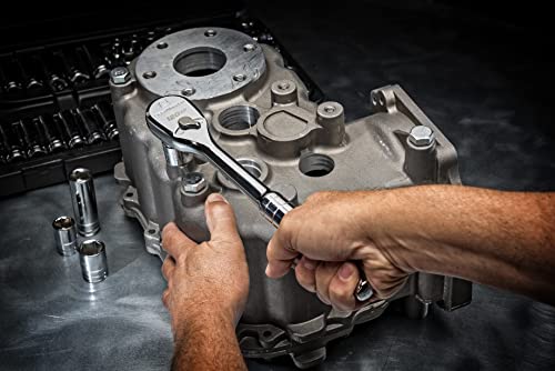 Delivering speed, strength, and access, the 51-piece GearWrench 80300P socket set includes a wide variety of SAE and metric sockets as well as a 1/4-inch 120XP ratchet, which delivers 120 positions in 360 degrees for an ultra-narrow 3-degrees swing arc that turns bolts where others can't. This set includes both standard and deep 6pt sockets from 3/16-inch through 9/16-inch and 4mm through 15mm, a universal joint, 2-inch and 6-inch extensions, and thumbwheel ratchet.