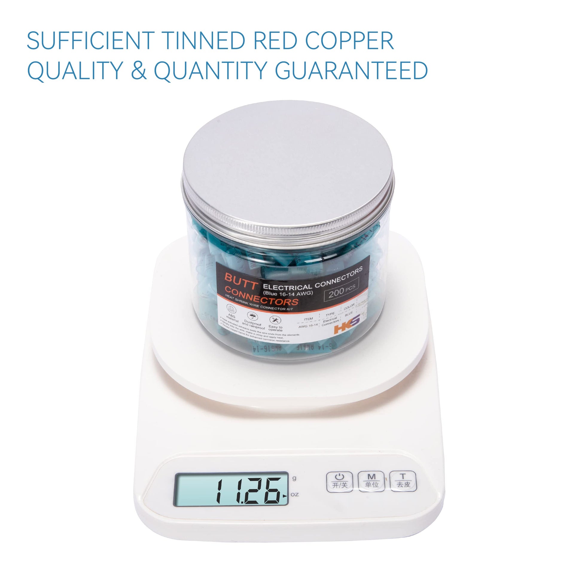 HKS 200 PCS Blue Heat Shrink Butt Connector 16-14 AWG - Electrical Connectors - Tinned Red Copper 0.8mm - Automotive Marine Stereo Boat Crimp - Waterproof and Insulated