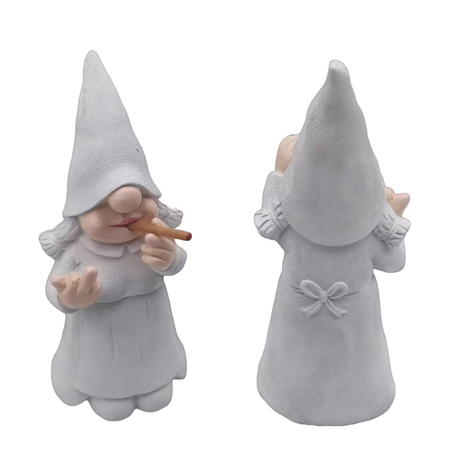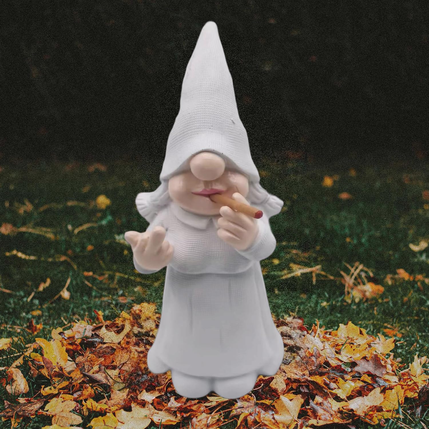 MINICAR 8'' H Funny Middle Finger Lady Gnomes Statues Outdoor Decor, Naughty Smoking Sculptures Garden Yard Patio Decorations, Paintable Unique Gifts
