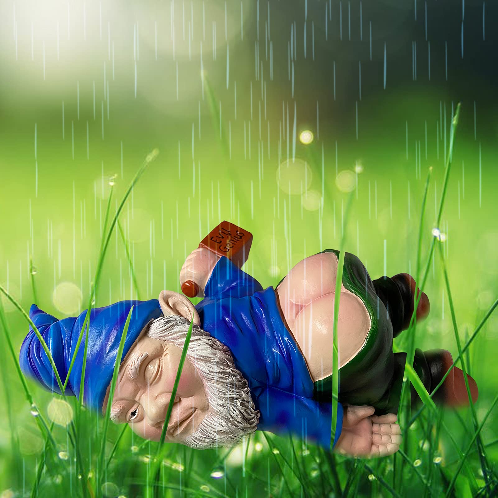 - 【Drunk Dwarf, Lying On The Ground】What a funny drunk gnome! He was drunk and still holding a bottle of wine, lying on the ground, one eye open, one eye closed, showing off his sexy little ass. This cute naughty gnome could add lots of fun atmosphere and fairy tale feel, bring smile to your family and friends.
