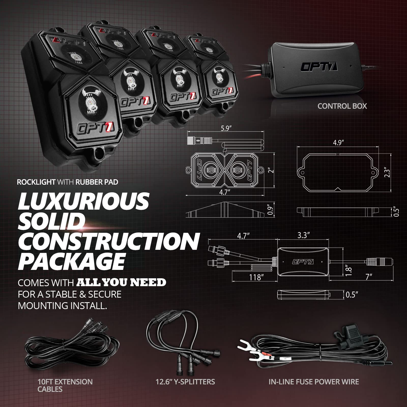 - [Reliable Support & Warranty] At OPT7, we stand behind our products! Backed by a 1-year warranty and a US customer support team, we’re here to help with any questions or concerns. Includes everything you need in the kit. Great for epic gifts for birthdays, Christmas, Halloween, or truck enthusiasts who love custom lighting!