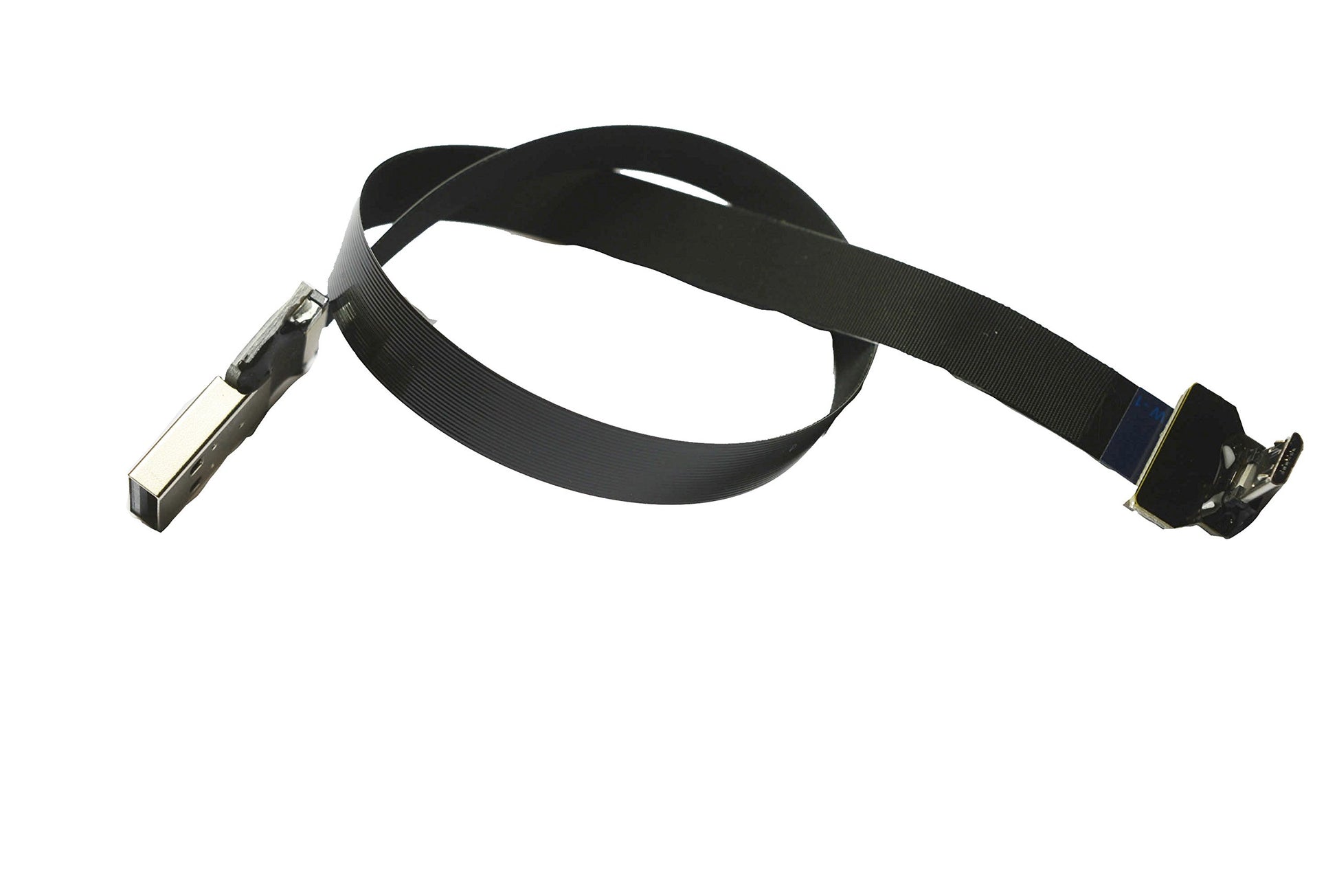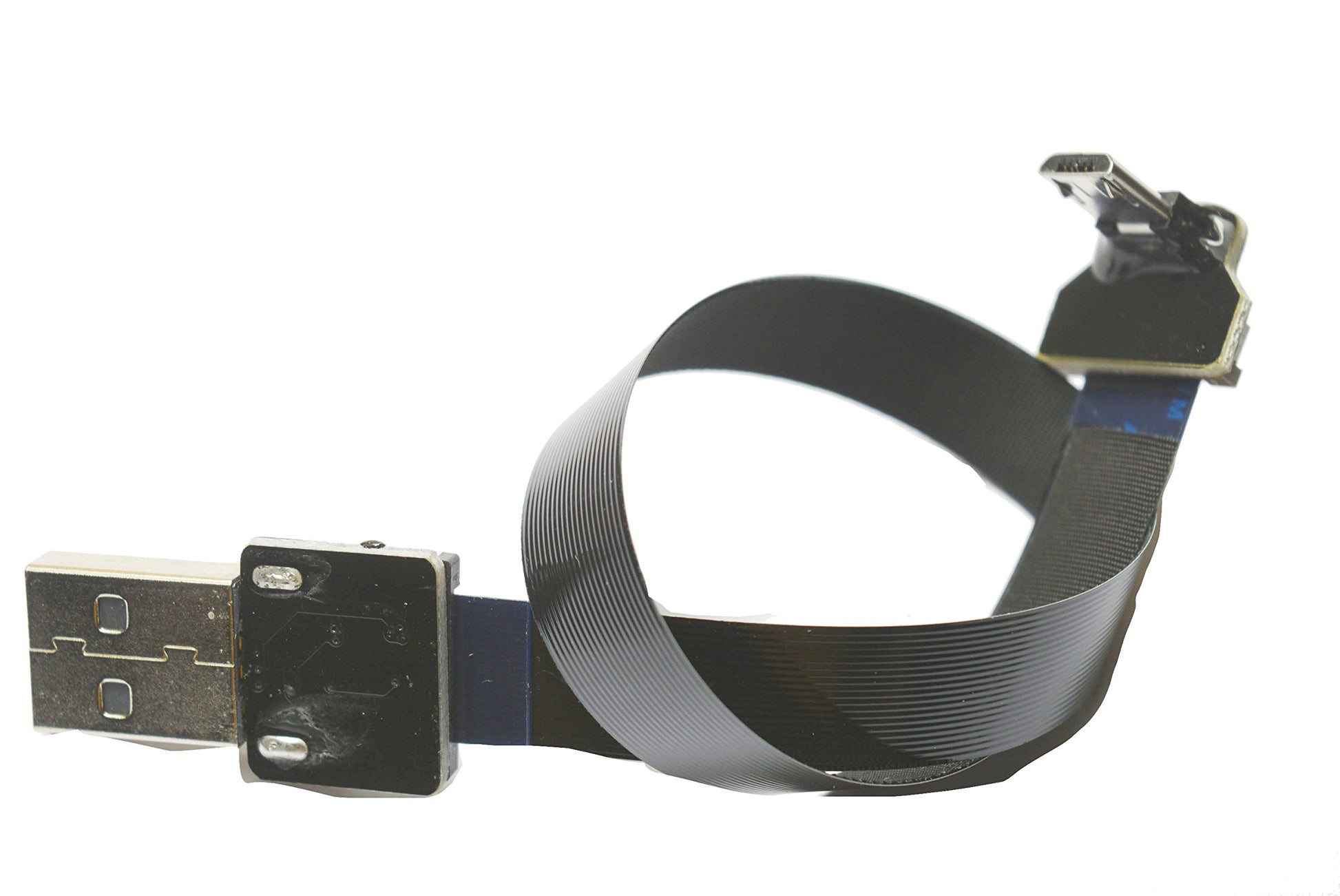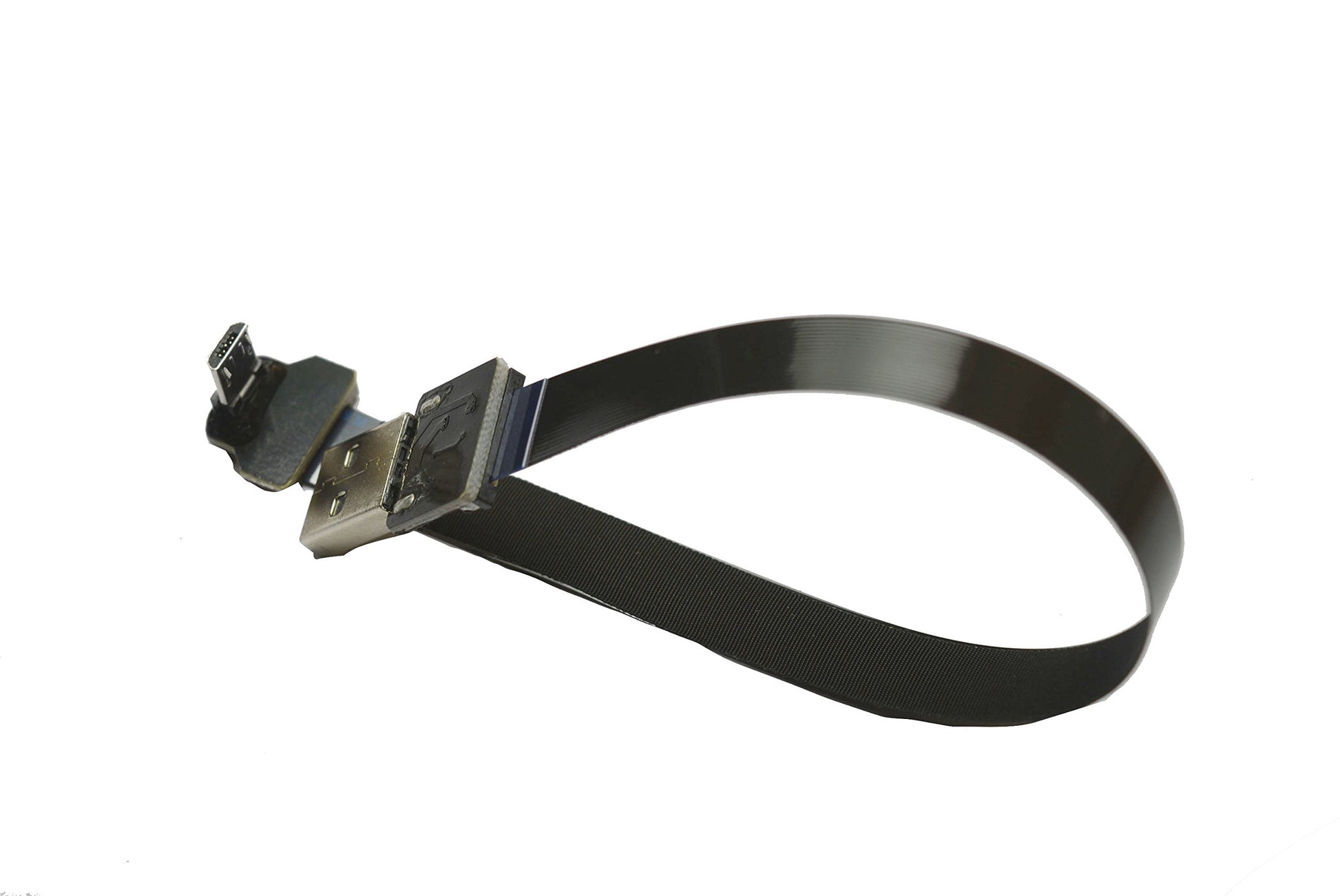 Permanent Black FFC Micro USB FPV Flat Slim Thin Ribbon FPC Cable Micro USB 90 Degree to Standard USB A for sync and Charging (30CM)