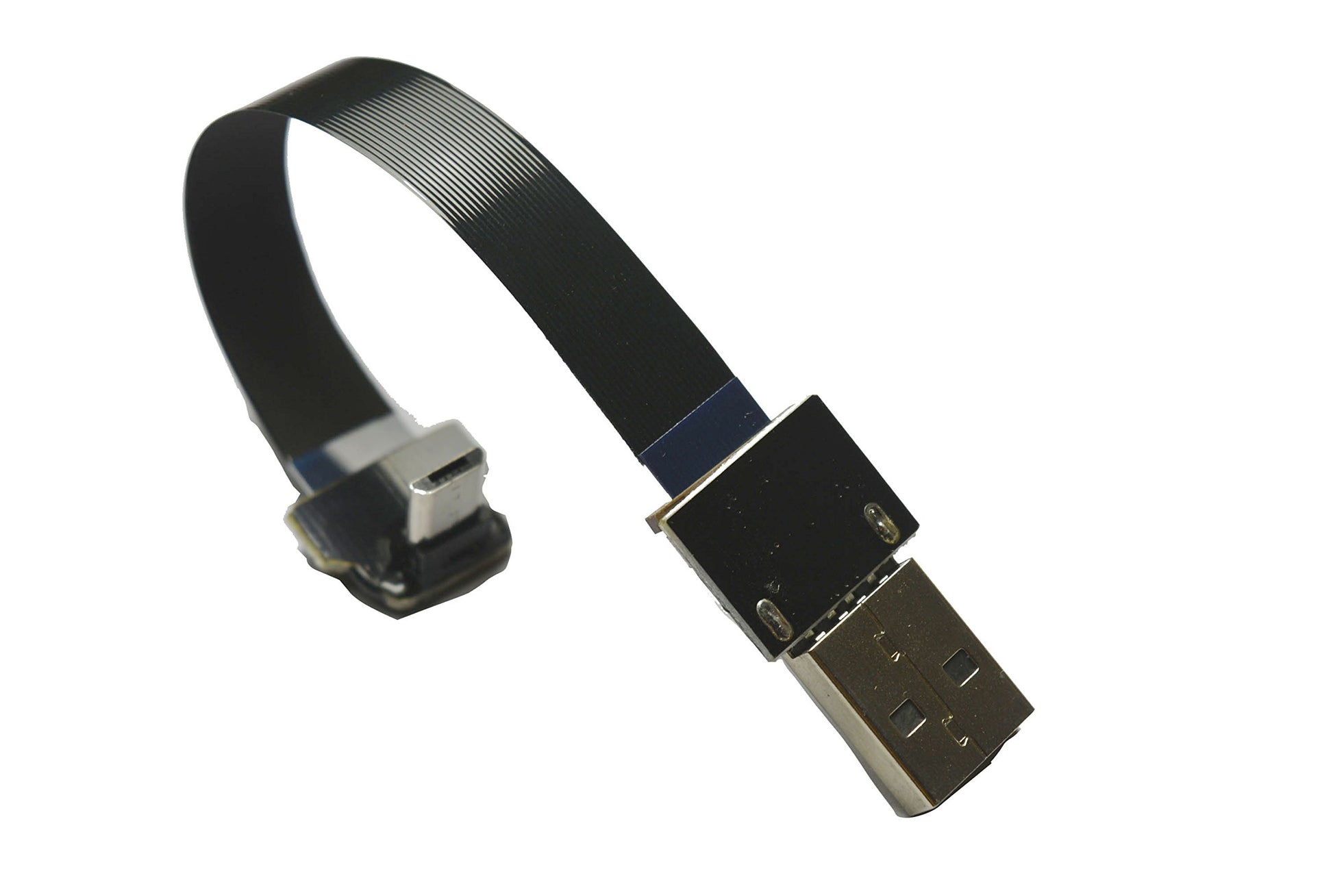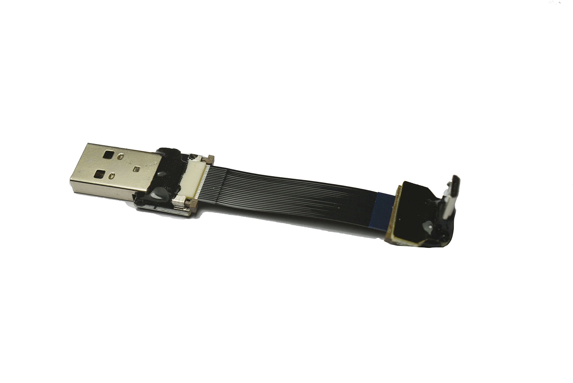Permanent Short FPV Flat Slim Thin Ribbon FPC Cable Micro USB 90 Degree to Standard USB A for sync and Charging (5CM)