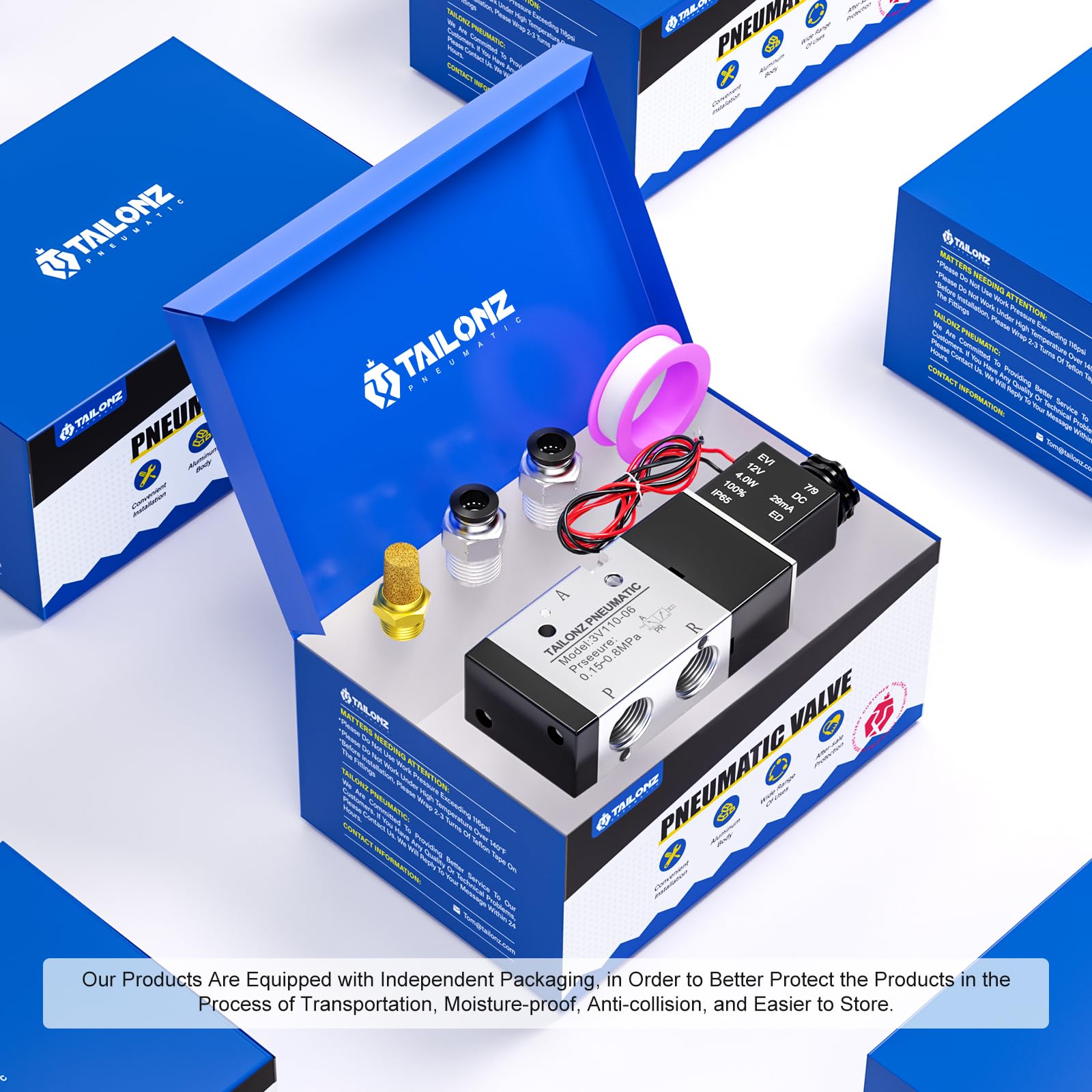 TAILONZ PNEUMATIC 1/4"NPT Solenoid Valve 3V210-08 DC12V Single Coil Pilot-Operated Electric 2 Position 3 Way Connection Type(Outlet wire)