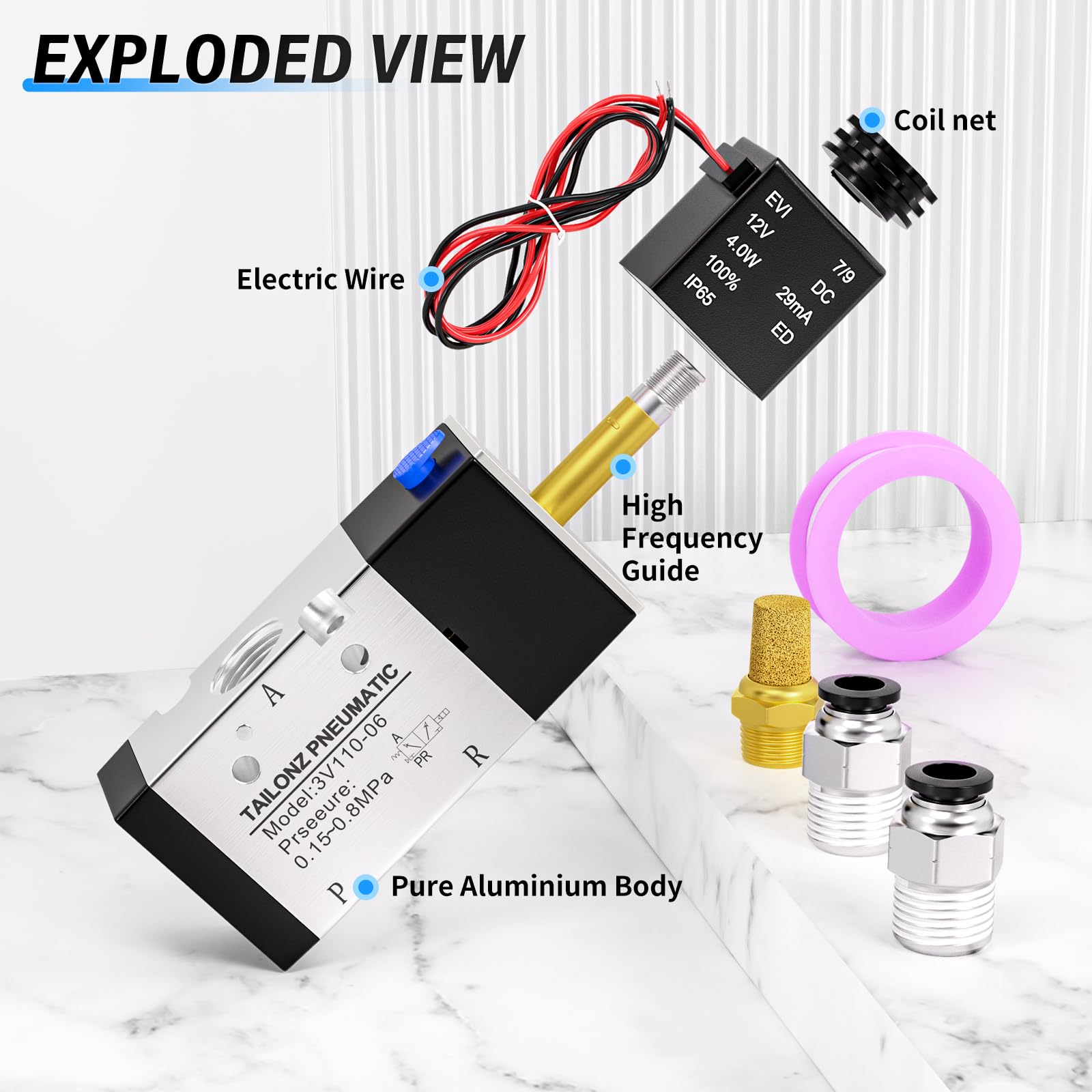- 【Size】Outlet Port:1/4"NPT;Inlet Port:1/4"NPT;Exhaust Port:1/4"NPT.We provide pneumatic fittings, which can be used by directly connecting 1/4 or 6mm air tubes.