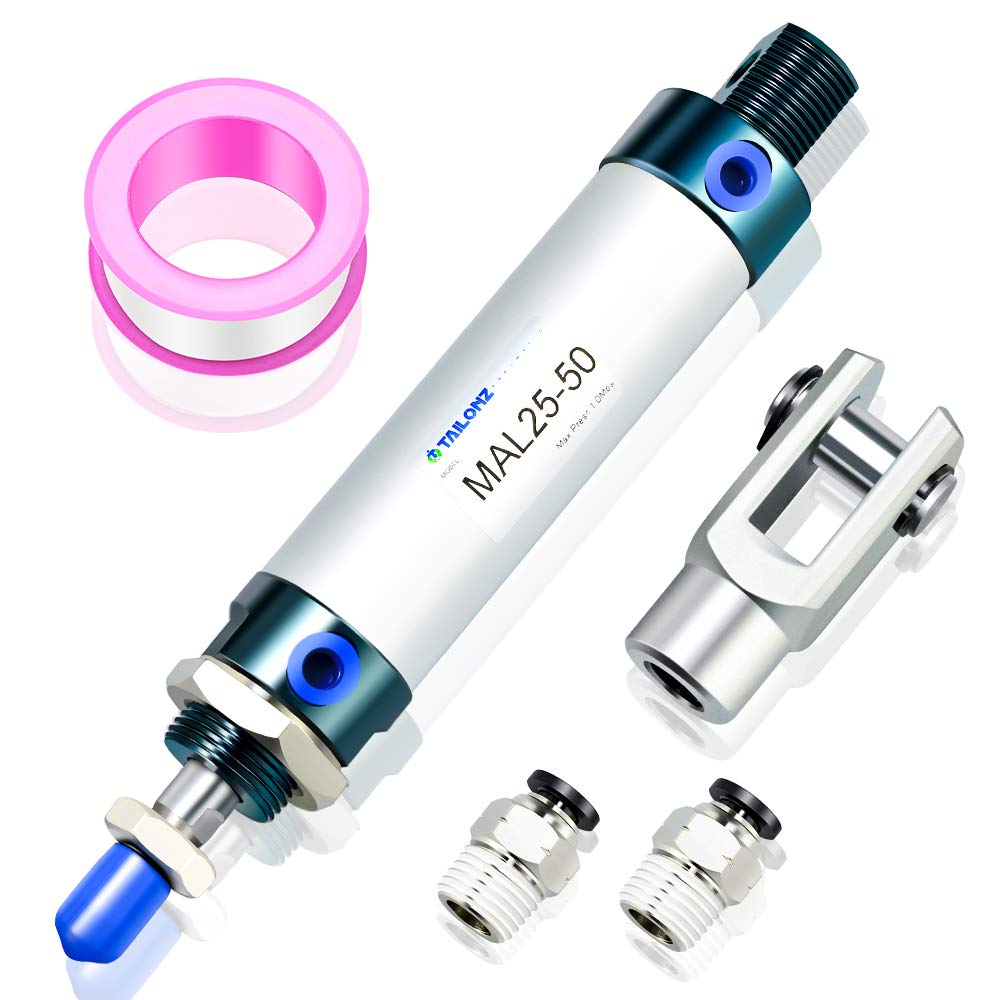 TAILONZ PNEUMATIC 25mm Bore 50mm Stroke Air Cylinder Double Action with Y Connector and 2Pcs 6mm Fitting MAL25x50