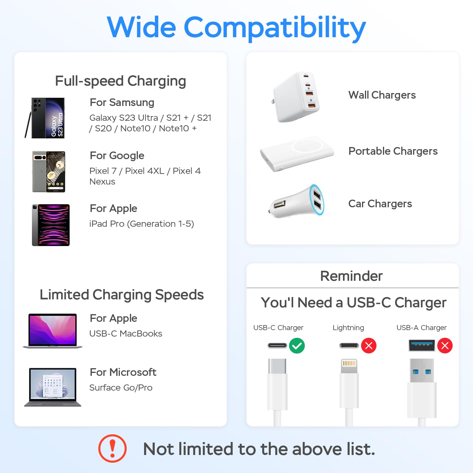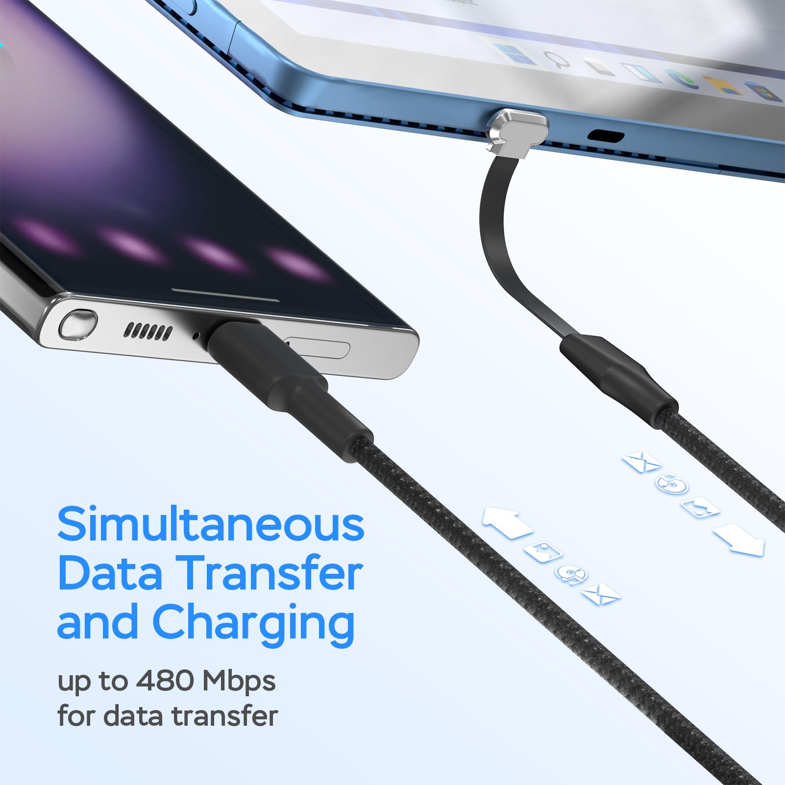 USB C Charger Cable, 60W 6ft Type C Charging Cable, Flat 90-Degree C-Port, High-Speed Data Transfer Compatible with Samsung S23/S22/S21, iPhone 15 Pro/Pro Max, MacBook Air/Pro, etc.