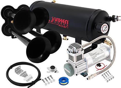 Vixen Horns Train Horn Kit for Trucks/Car/Semi. Complete Onboard System- 200psi Air Compressor, 1.5 Gallon Tank, 4 Trumpets. Super Loud dB. Fits Vehicles like Pickup/Jeep/RV/SUV 12v VXO8315/4114B