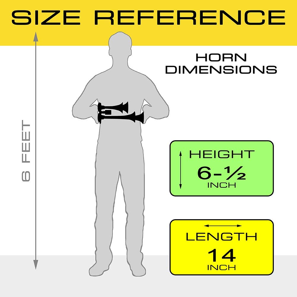 - POWERFUL ONBOARD AIR COMPRESSOR SYSTEM - This full train air horn kit includes a 200 PSI compressor and a 1.5 Gallon air tank made of steel, designed to sustain high pressures for long-lasting use and safety. This effective reliable system ensures the horns will be ready to blow whenever you need them