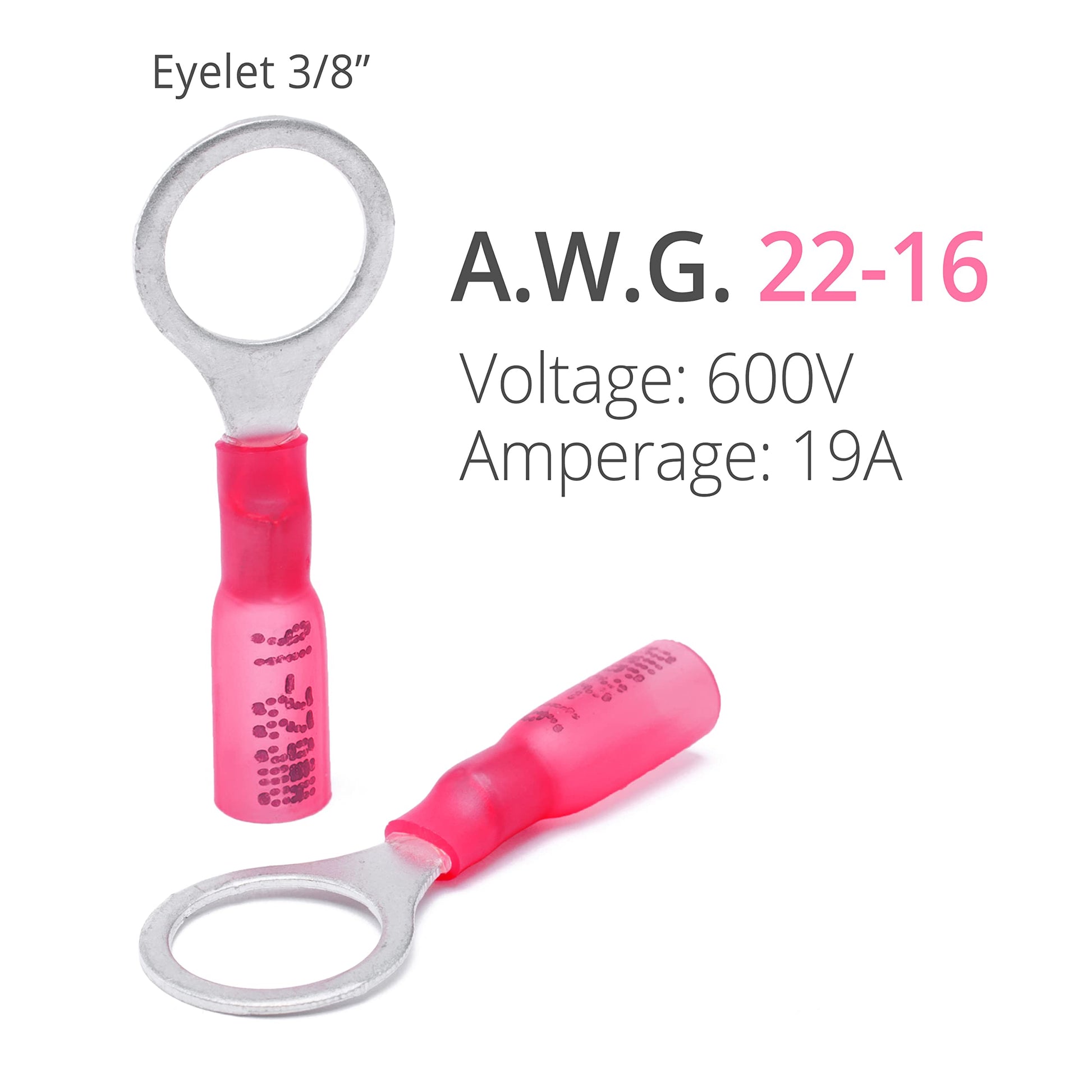 Wirefy 150 PCS Heat Shrink Ring Terminals 3/8" - a Resistant Ring Connectors - Eyelet Wire Connectors - Red 22-16 AWG