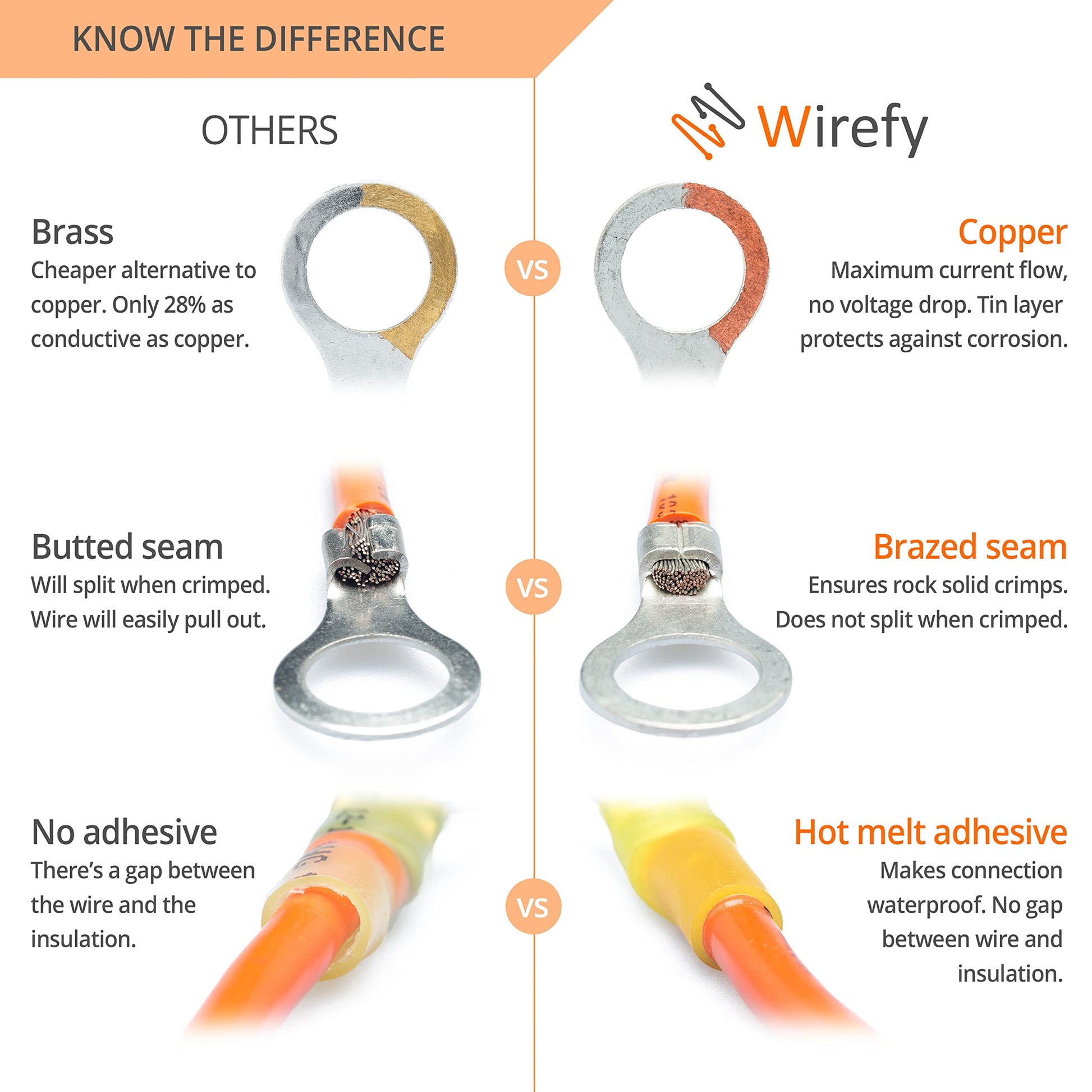 - PROFESSIONAL RING TERMINALS - These wire terminals are crafted from pure copper to achieve maximum current flow. Wire eyelets are tinned for enhanced corrosion resistance.