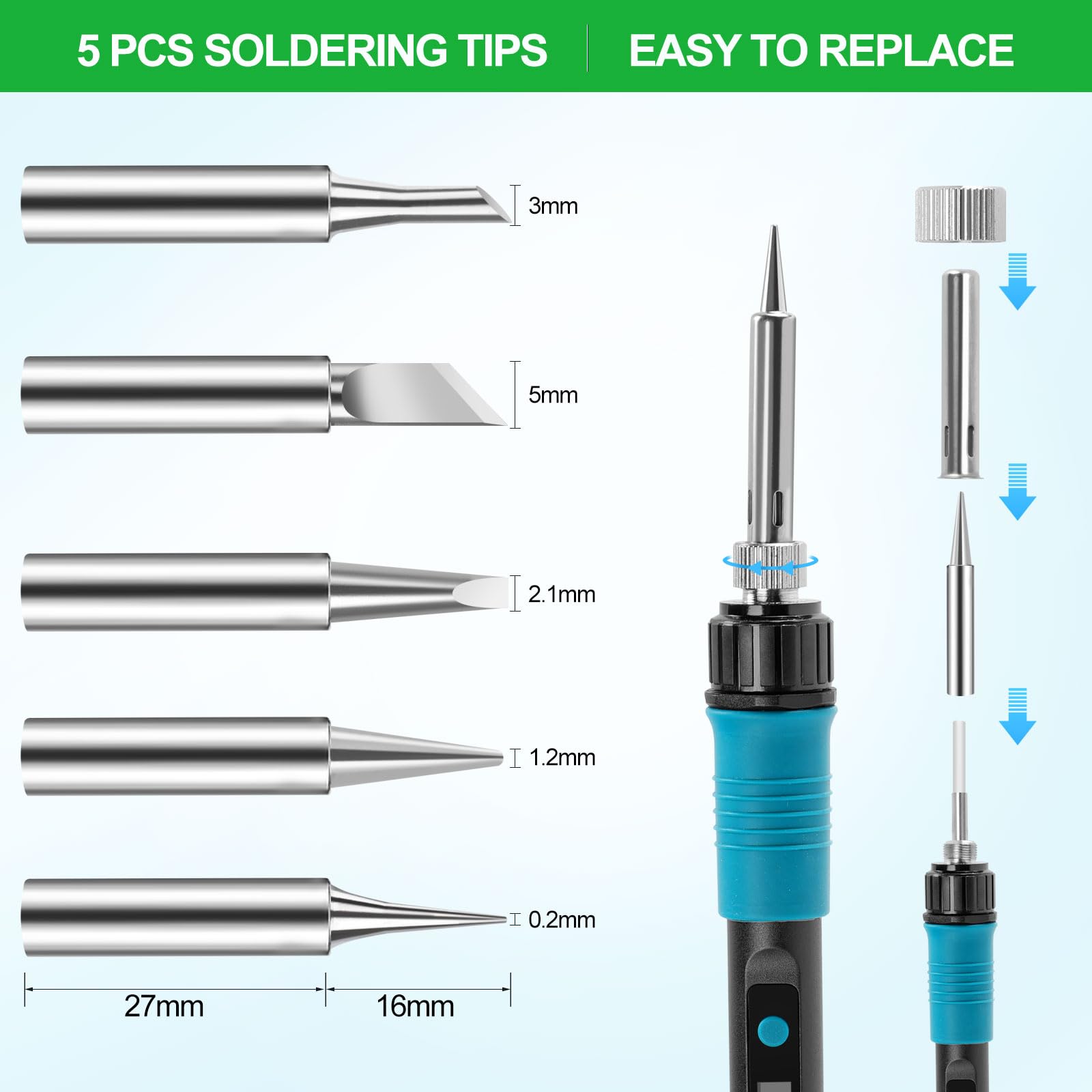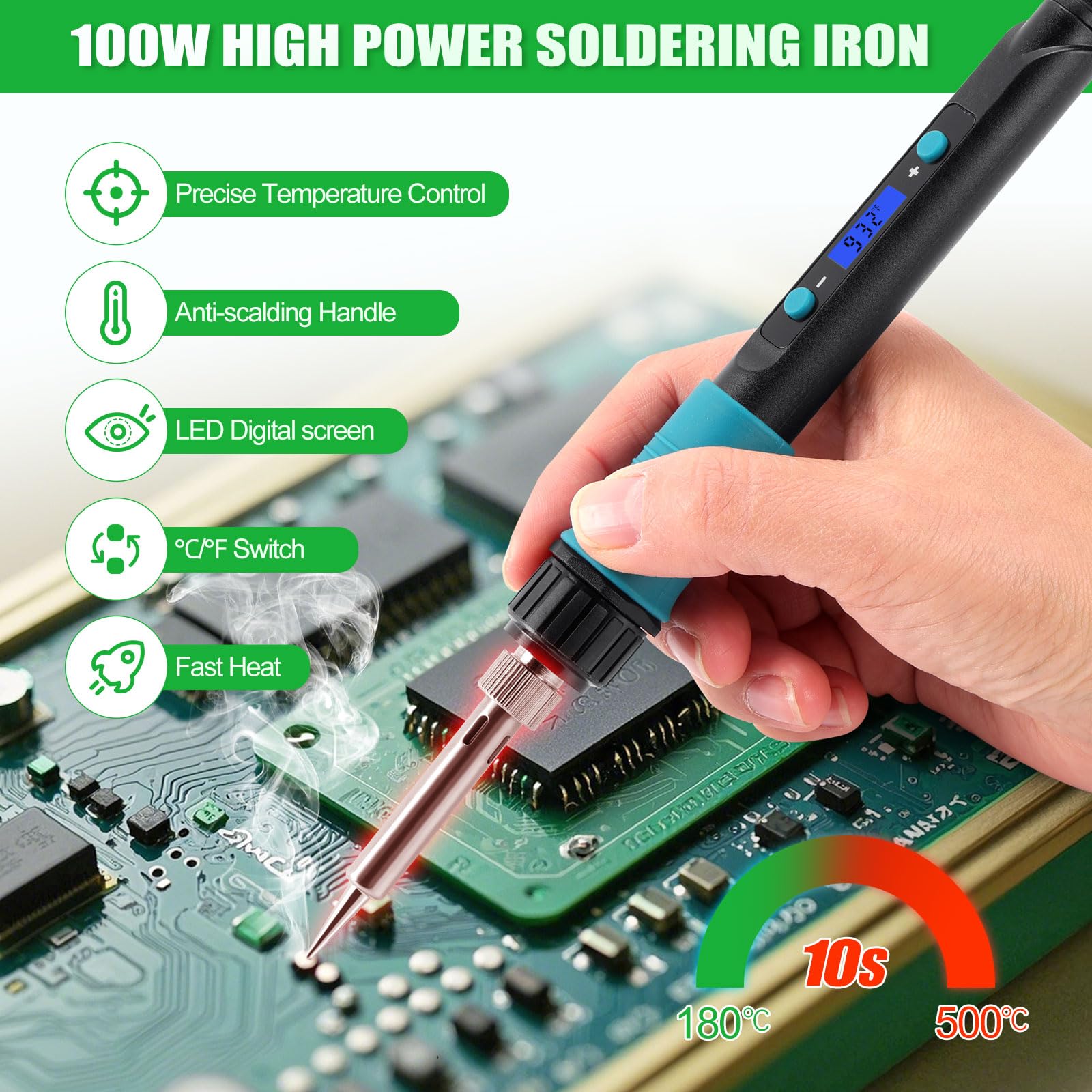 WORKEASE 100W Soldering Iron Kit, LED Digital Solder Iron with 5pcs Tips, 10s Fast Heating Max 932℉, Adjustable Temperature Soldering Iron Kit for Electronics for Electronic Repair, DIY