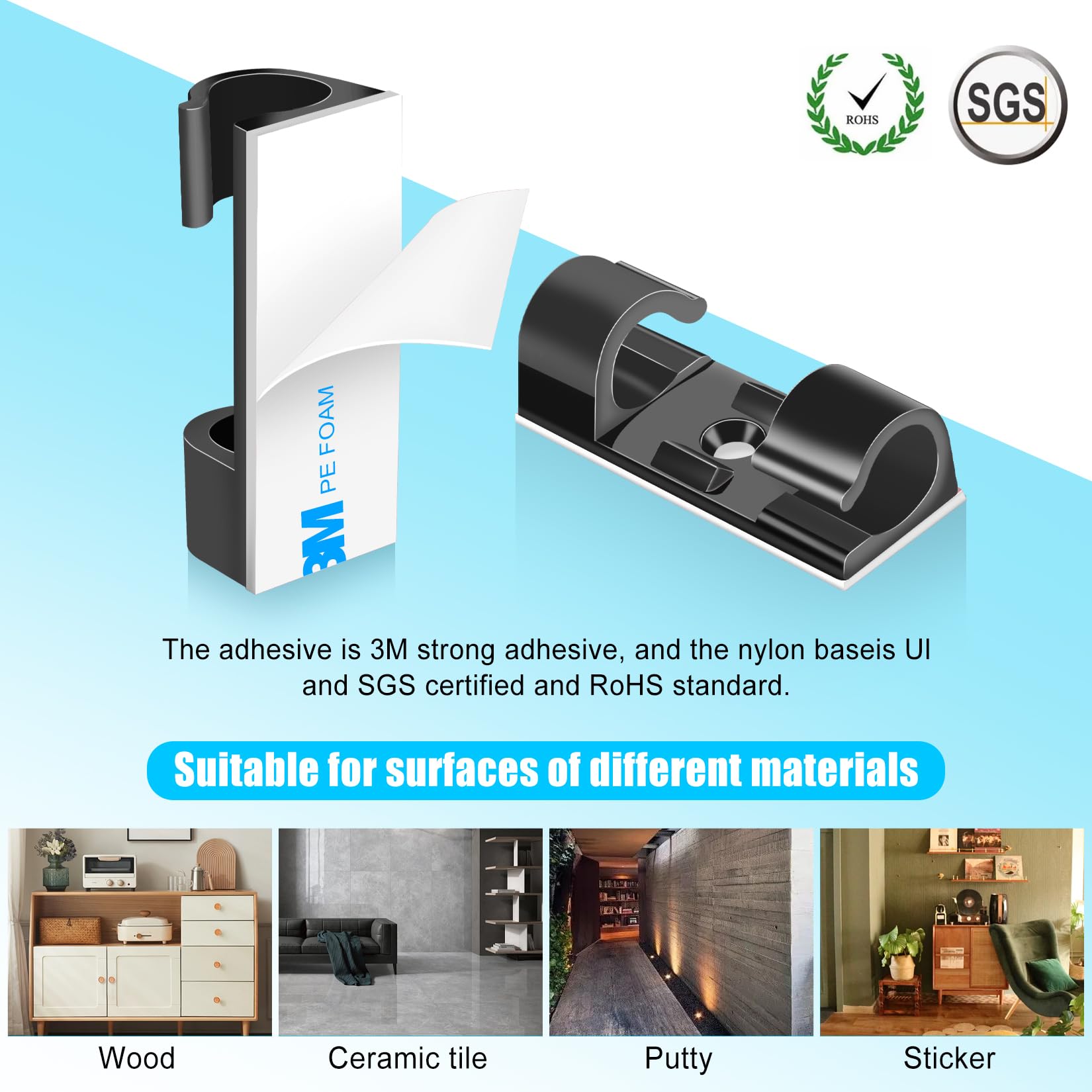 - High quality material:XHF Adhesive Cable Clips are manufactured from 3M Strong Adhesive and PA66 nylon