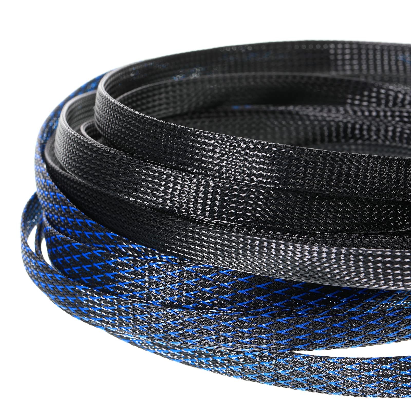 Xuniea 96ft Wire Loom Braided Cable Sleeve Covers Cord Management with 127 Pcs Tube Heat Shrinkable for Audio Video Cable Cord Protectors from Pets(1/2, 1/4, 3/8 Inch,Black and Blue)